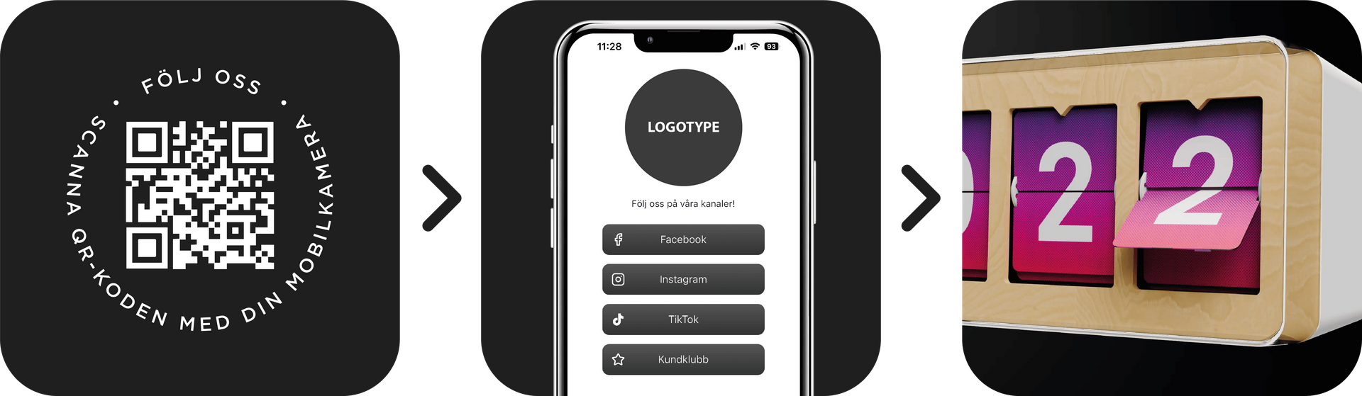 Resultatet är en lösning som hjälper er att nå era mest värdefulla följare – de som faktiskt är på plats hos er. Det är lojala följare på riktigt. Räknarna visar siffror i realtid från exempelvis Facebook, Instagram, TikTok eller din kundklubb, och väcker nyfikenhet hos förbipasserande som stannar till för att följa för att få se siffrorna röra på sig. Det gör det roligare att följa er, stärker ert varumärke och skapar engagemang på plats.
